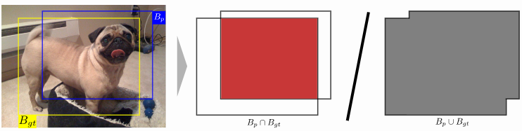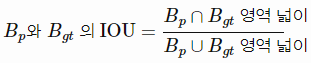 이때 모델이 예측한 bounding box, Bp와 실제 ground-truth bounding box, Bgt의 영역을 비교한다.