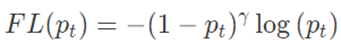y=0일때 pt=1-p이므로 FL(pt)=-p^r*log(1-p)이다. 따라서 p가 작을수록 loss가 작아지고